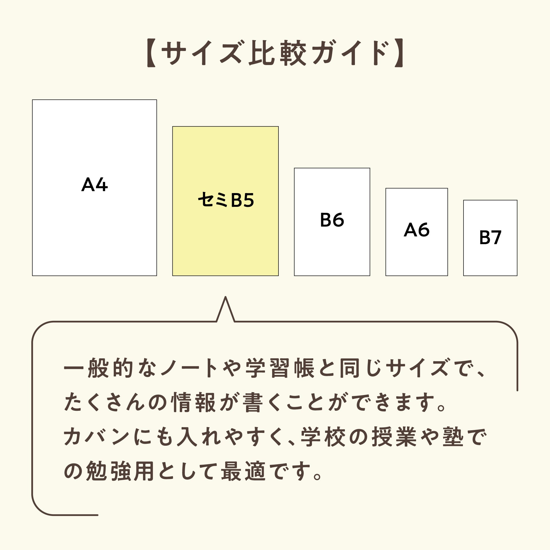 サイズは、一般的なノートや学習帳と同じサイズで、たくさんの情報が書くことができます。